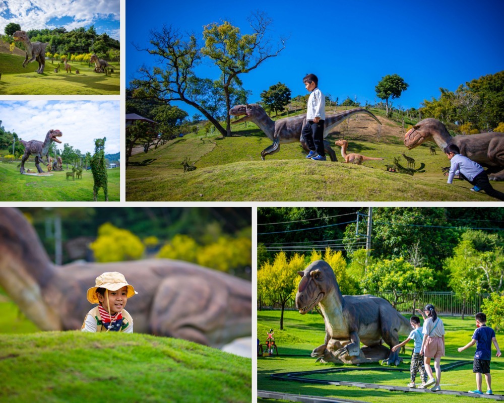 大人跟小孩都喜愛的恐龍在山丘上漫漫舞動,像恐龍家族和樂自得漫步在山坡上,一同享受與恐龍沐浴在陽光中。