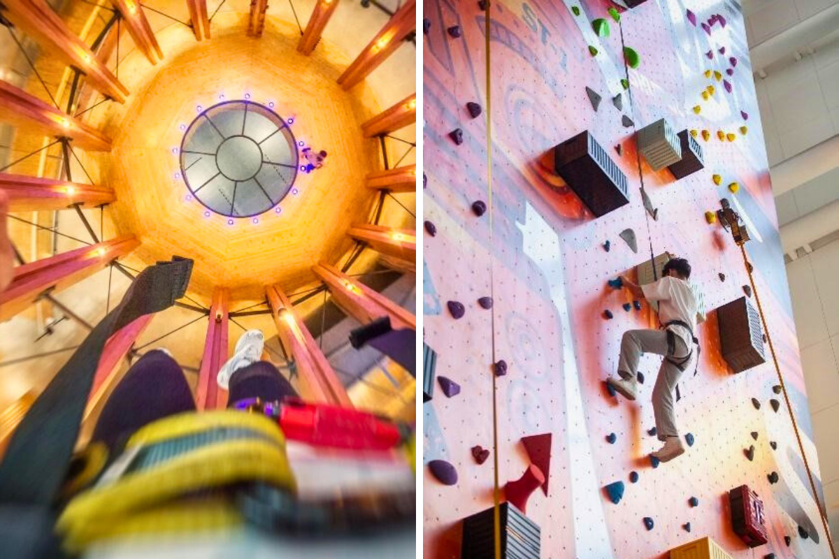 建築內還有著全台室內最高、長達 20 公尺的「全面啟動夢境」攀岩牆,和「爬上生命樹」攀樹體驗,以及 10 秒下降 30 公尺的「樹心跳到底」的垂降體驗等三項室內活動,很適合親子共同參與,在木構建築中進行一場勇氣挑戰。