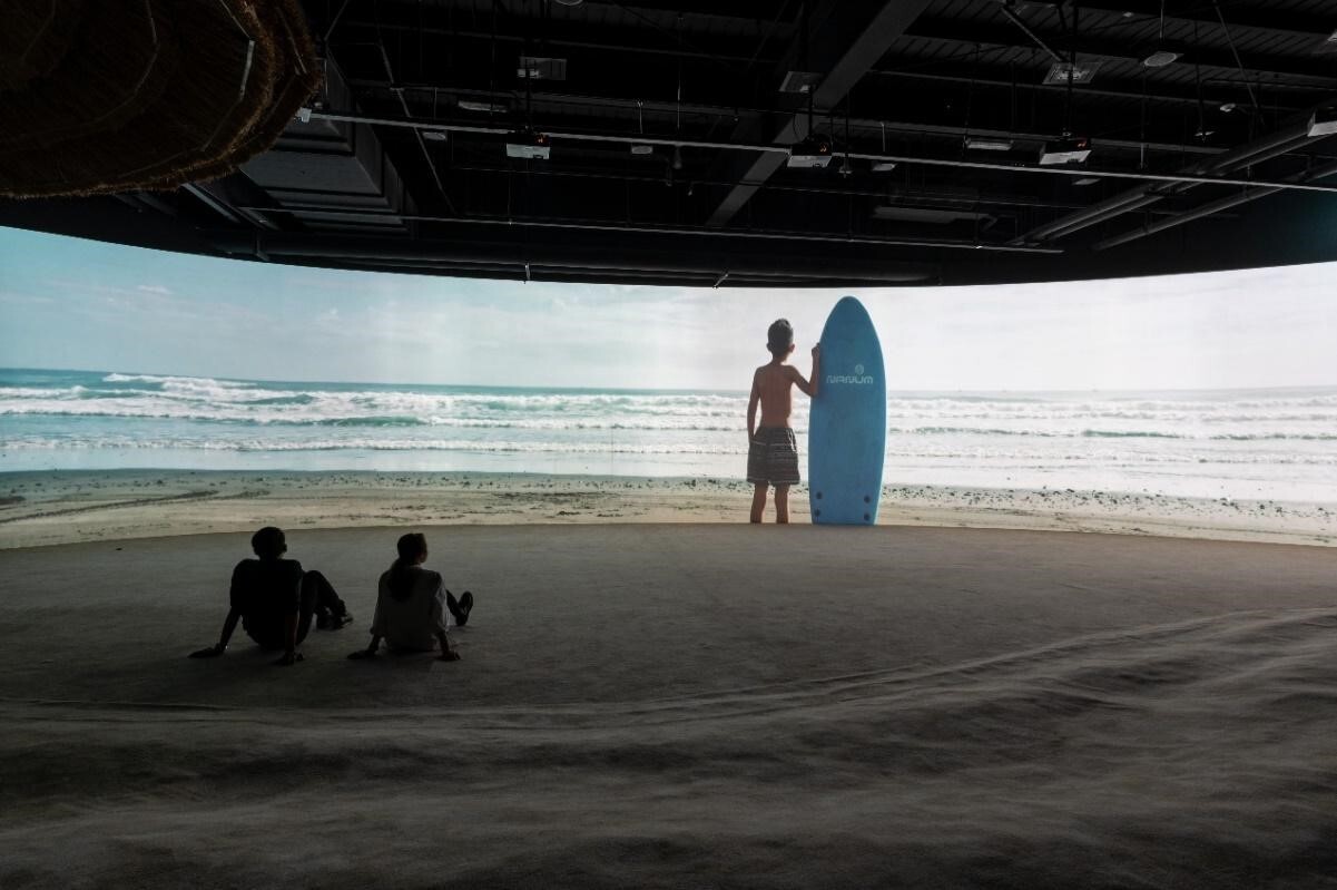 ▲文化館內擁有世界唯一的海邊劇場,室內沙灘看海感受24公尺弧形巨幕帶來的影音震撼。