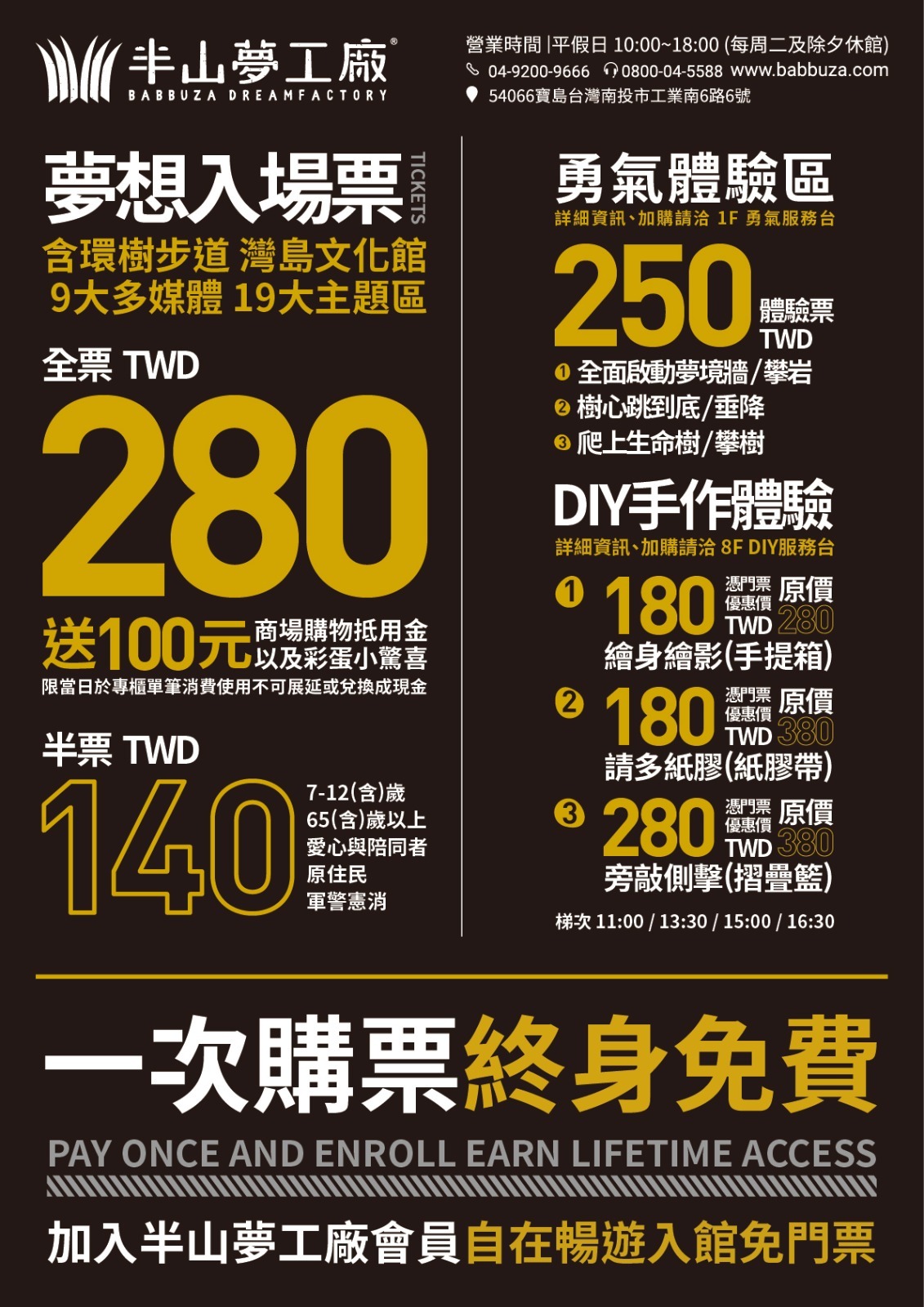 ✓ 半山夢工廠(含環樹步道及灣島文化館)︱全票1張 |