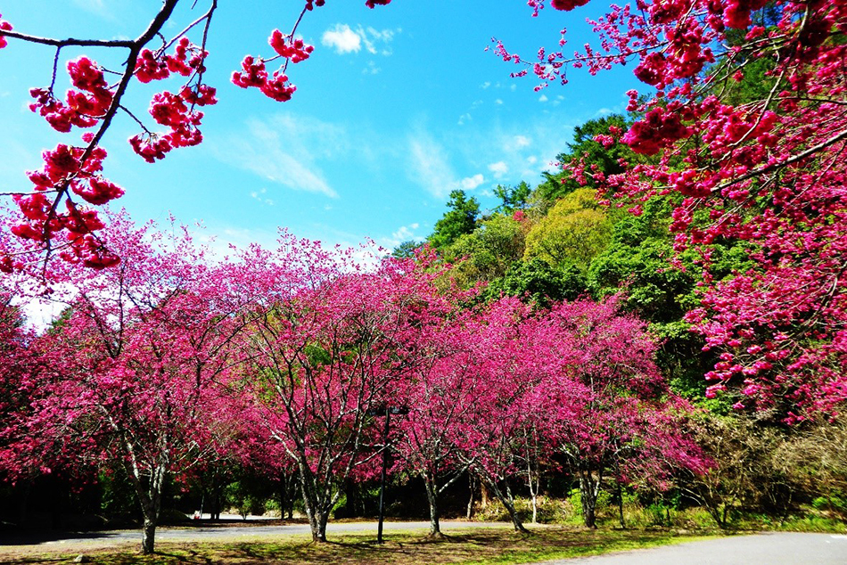 賞楓步道上大片的原生楓香林,與遊客中心緊鄰的落羽松、青楓等,每逢秋季必將園區點綴得萬紫千紅,是奧萬大最熱鬧的季節,但春天櫻花的美其實也不遑多讓。而壯觀的「奧萬大吊橋」連接著美麗的松林區,長180公尺,高90公尺,可以眺望萬大南北溪交匯,也是拜訪奧萬大必遊的景點喔!