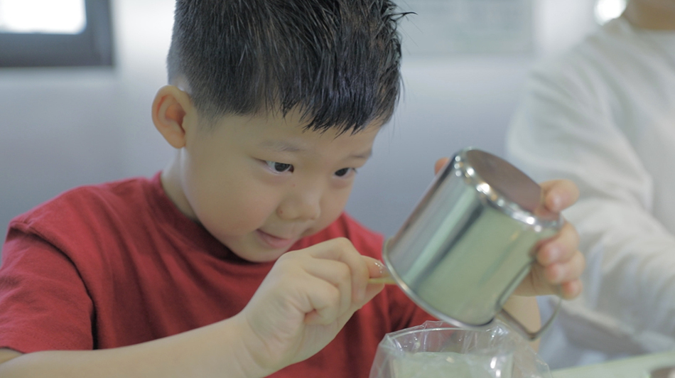 至一樓菌寶貝博物館收銀台出示產品電子憑證(QR code),感應QR Code後由工作人員協助帶領至手作教室。