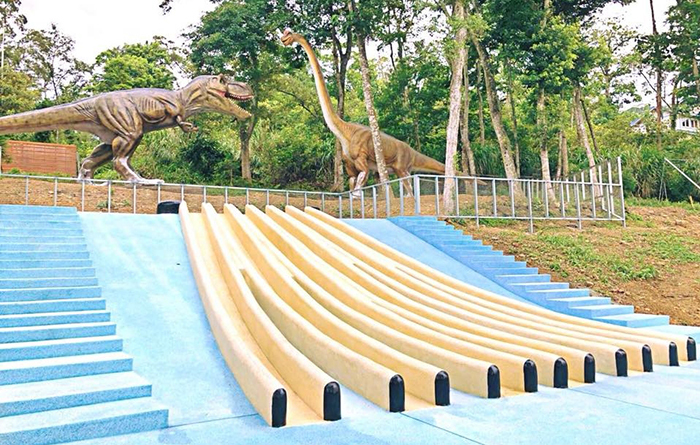 除了大人玩的溜滑梯之外,蘇維拉莊園裡也有專屬小朋友的芭娜娜滑梯!用香蕉外型設計的滑梯大受小朋友的喜愛,在芭娜娜滑梯上方還有兩隻雄偉的恐龍,恐龍的叫聲陪伴小朋友玩耍,既刺激又可愛!