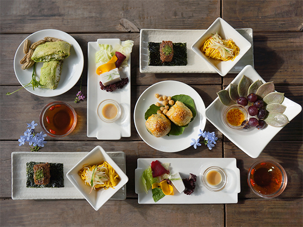 創意蔬食自助饗宴:季節沙拉、季節麵線、經典飯食、珍珠蔬菜捲、客家小漢堡、創新蔬食料理、點心(實際出餐菜色依季節調整及現場供應為主)