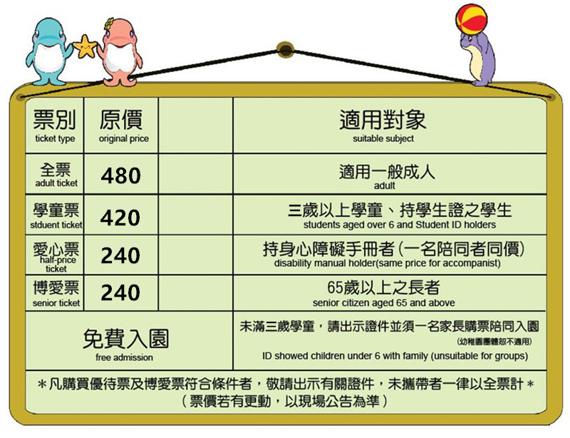 7.奇幻彩繪魚假日開放,現場收費100元,不含在此優惠門票內