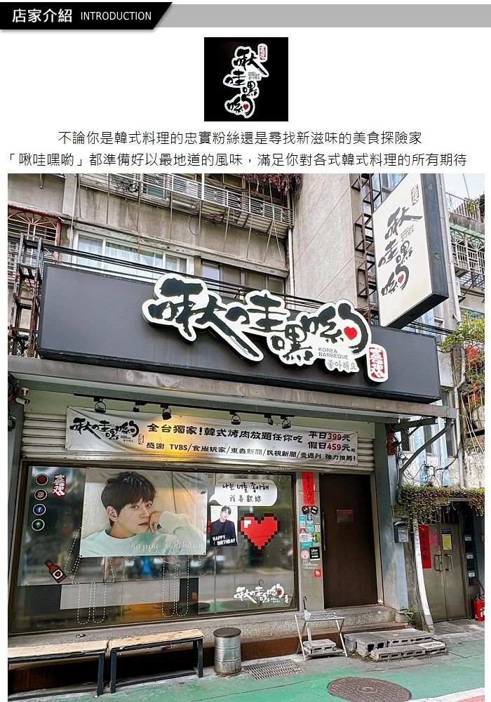 1.單張可2人於《啾哇嘿喲韓式烤肉專門店》享平日雙人豬肉吃到飽乙客。(已含服務費)