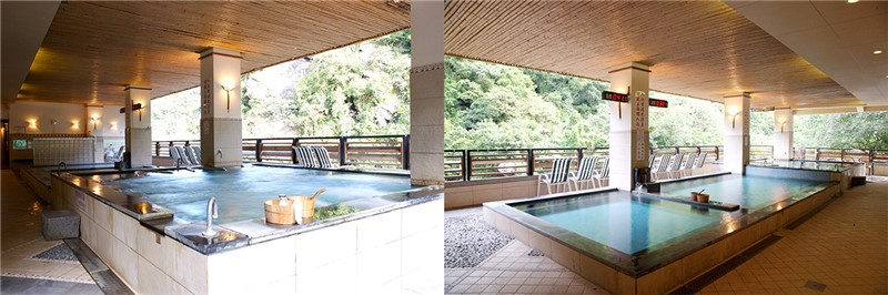 室外露天湯屋採原石砌製的寬敞浴池,精心設計的半露天風呂,可欣賞未經琢磨的奇山秀石,自然山水環繞的享受,美景一覽無遺卻無需擔心隱密性;潺湲的水聲、清晰悅耳的蟲鳴鳥叫,是您舒展疲憊身心時額外享受。