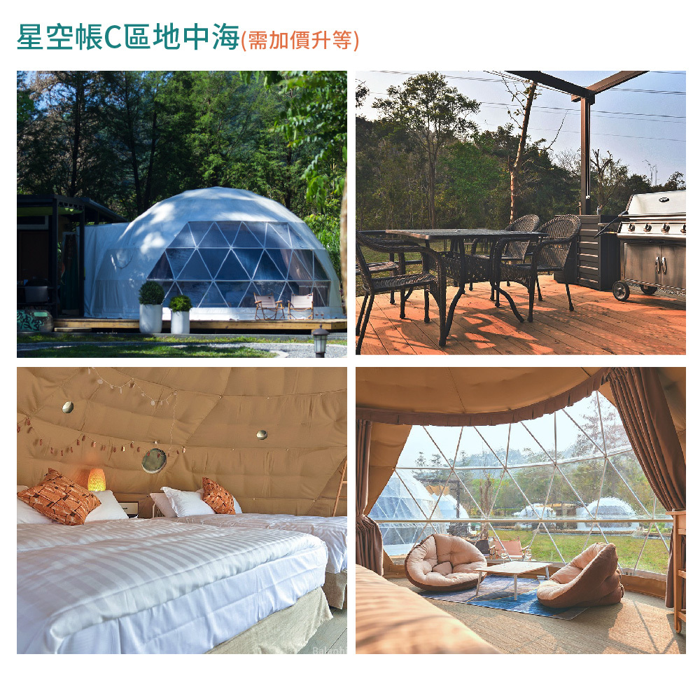 1.星空帳C區地中海,平日需加價$800/間,假日需加價$2100/間,加人加床另計