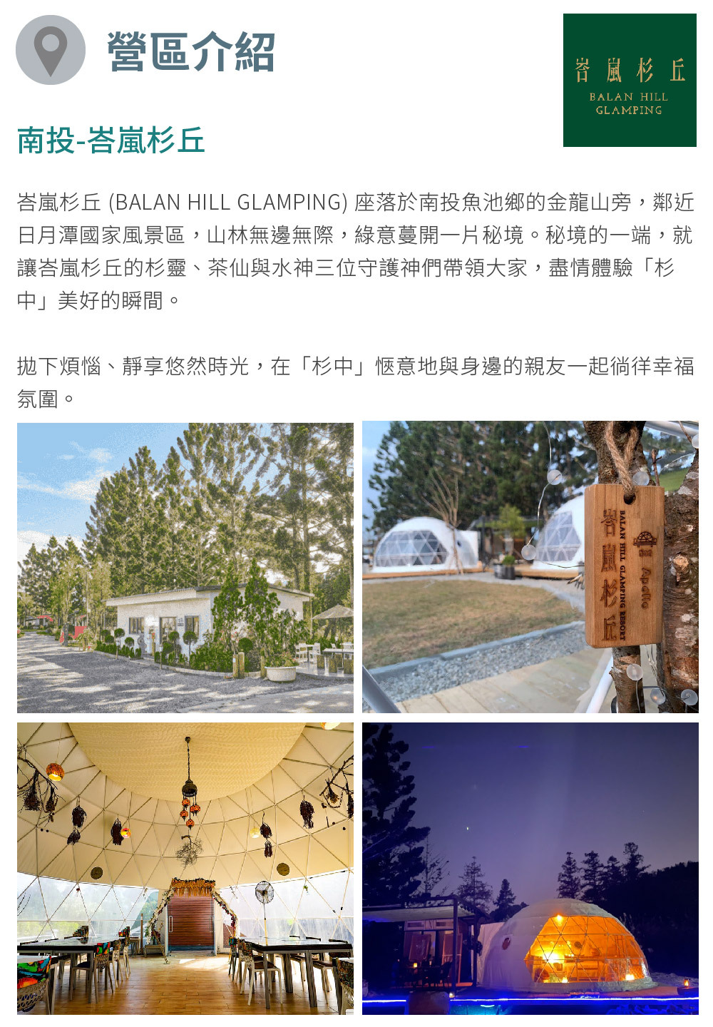 峇嵐杉丘座落於南投魚池鄉的金龍山旁,鄰近日月潭國家風景區,山林無邊無際,綠意蔓開一片秘境。拋下煩惱、靜享悠然時光,在「杉中」愜意地與身邊的親友一起徜徉在幸福的氛圍裡。