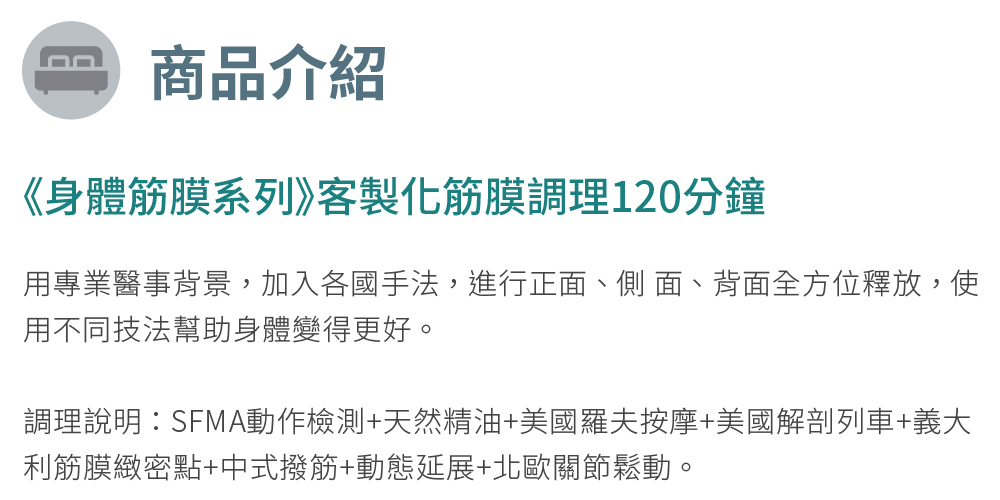 是介於按摩與整復推拿之間的身體保養品牌。透過肌筋膜的調理開啟彼此心房,以充滿正能量的愛、笑容與活力,溫暖他人。
