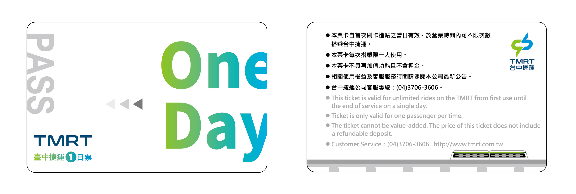 票卡啟用後,於當日營運時間內可不限區間、不限次數搭乘臺中捷運。