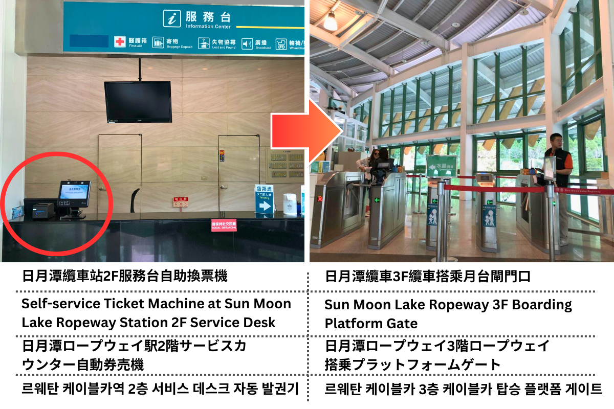 ◎兌換方式:請持電子憑證(QR Code)至日月潭纜車站2F服務台自助換票機核銷換取實體票券,再持實體票券至日月潭纜車3F纜車搭乘月台閘門口感應QR Code搭乘日月潭纜車。