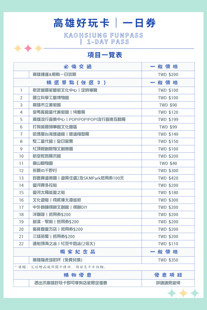 ➡️為高雄市政府所發行,安心便利,即使初次來台灣高雄旅遊也能立刻上手